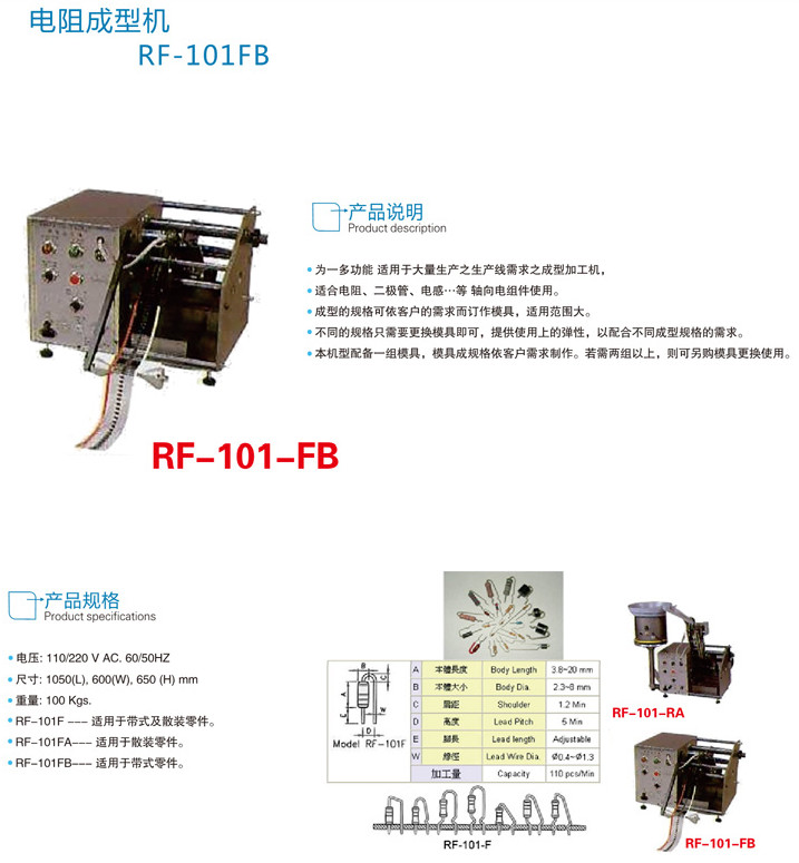 產(chǎn)品名稱:電阻成型機RF-101FB